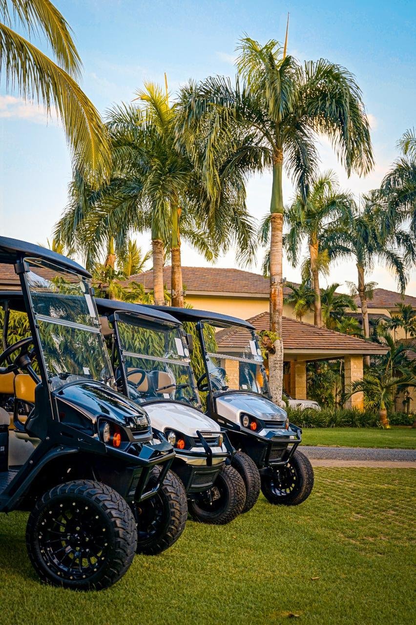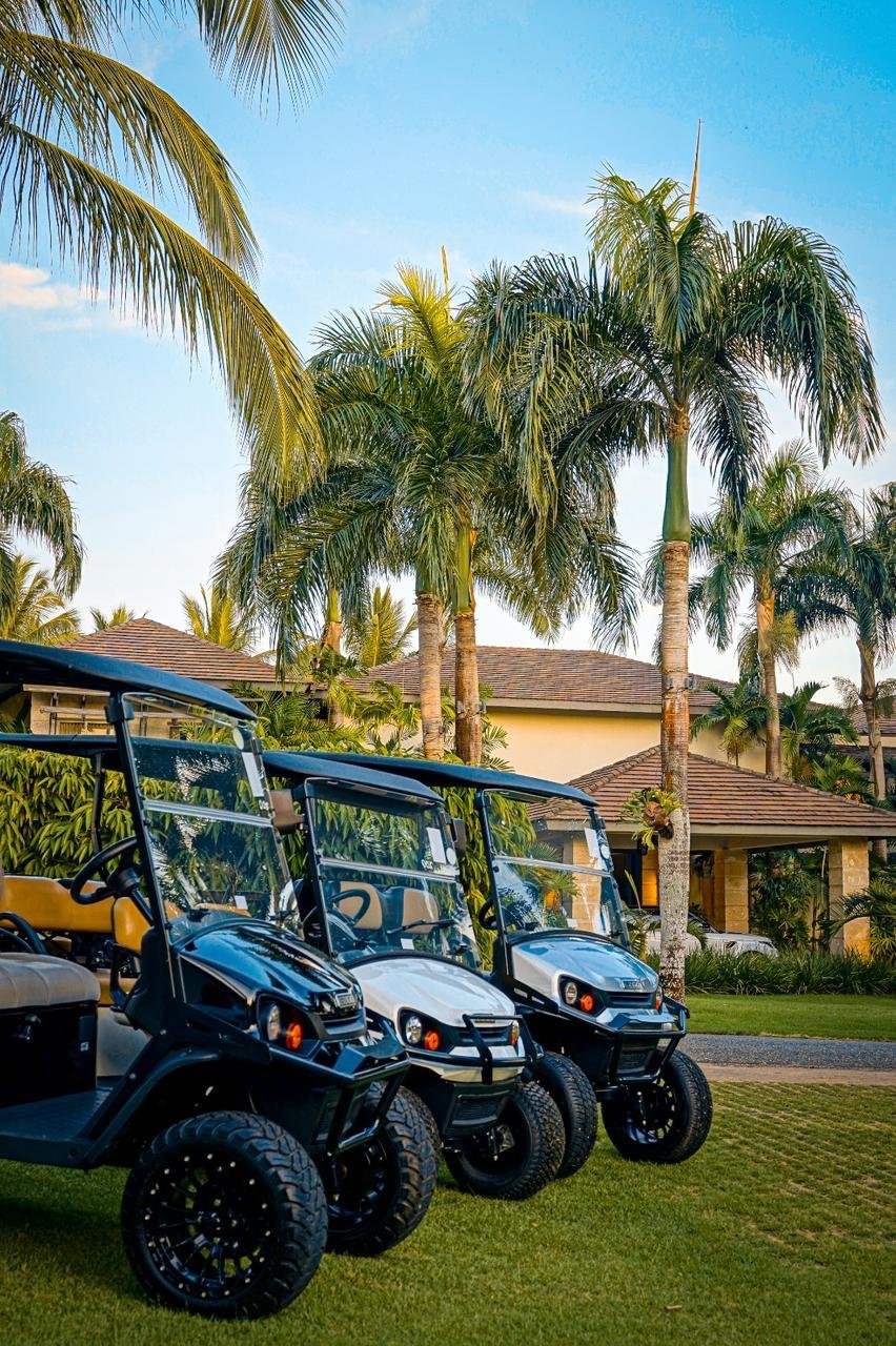 Enhance your stay by booking a private golf cart for your time at Casa de Campo. Move around the resort easily, whether visiting the Marina, Altos de Chavón, the beach, or the golf courses. Our golf carts are available for daily or full-stay rentals, ensuring convenience, speed, and a touch of luxury wherever you go.